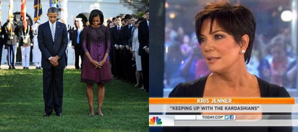 At 8:46 a.m. almost every major news outlet went live to the White House where the Obamas (left) and the nation was observing a moment of silence for the victims lost on 9/11. Meanwhile, on NBC’s ‘Today Show,’ it was tit talk with Kardashian matriarch Kris Jenner.